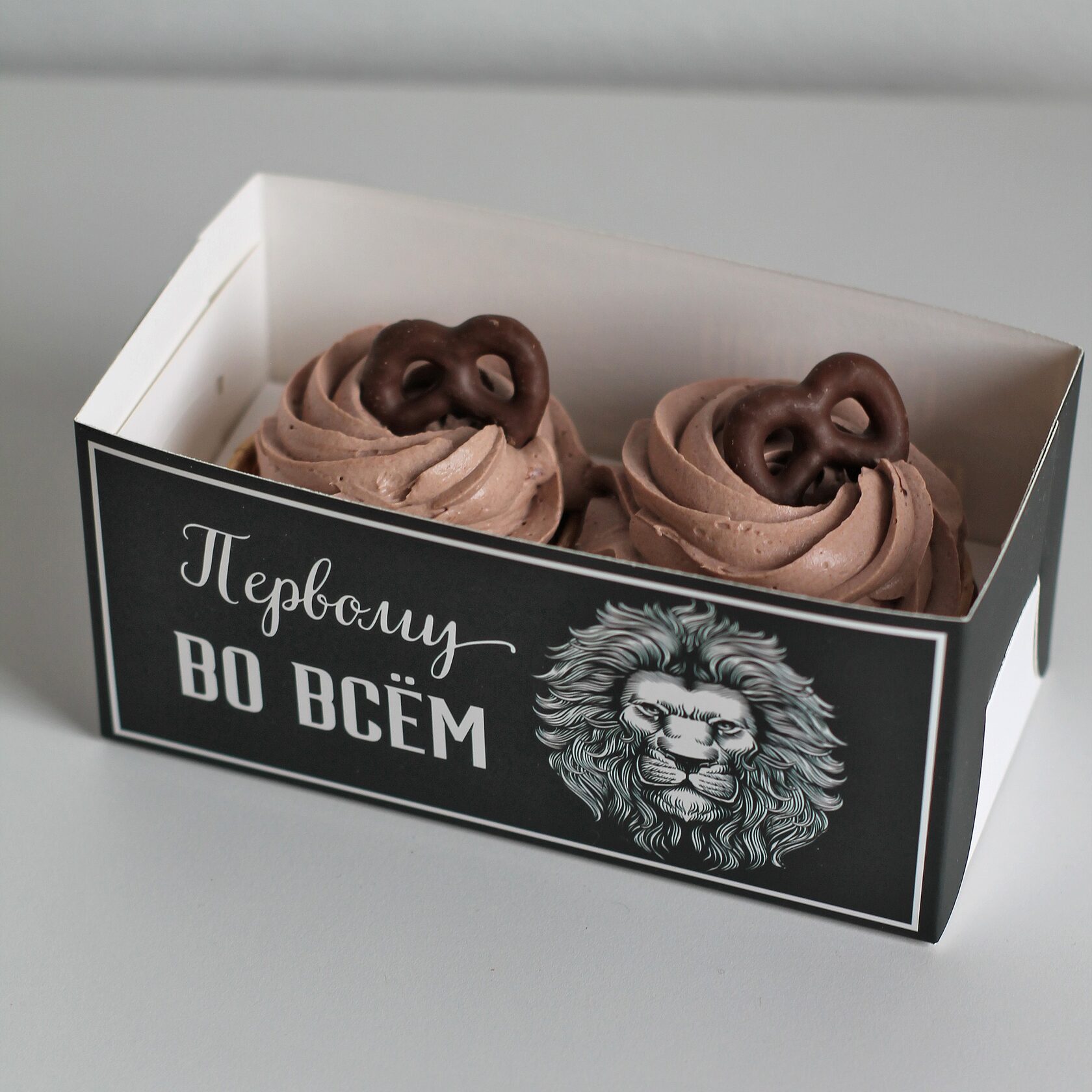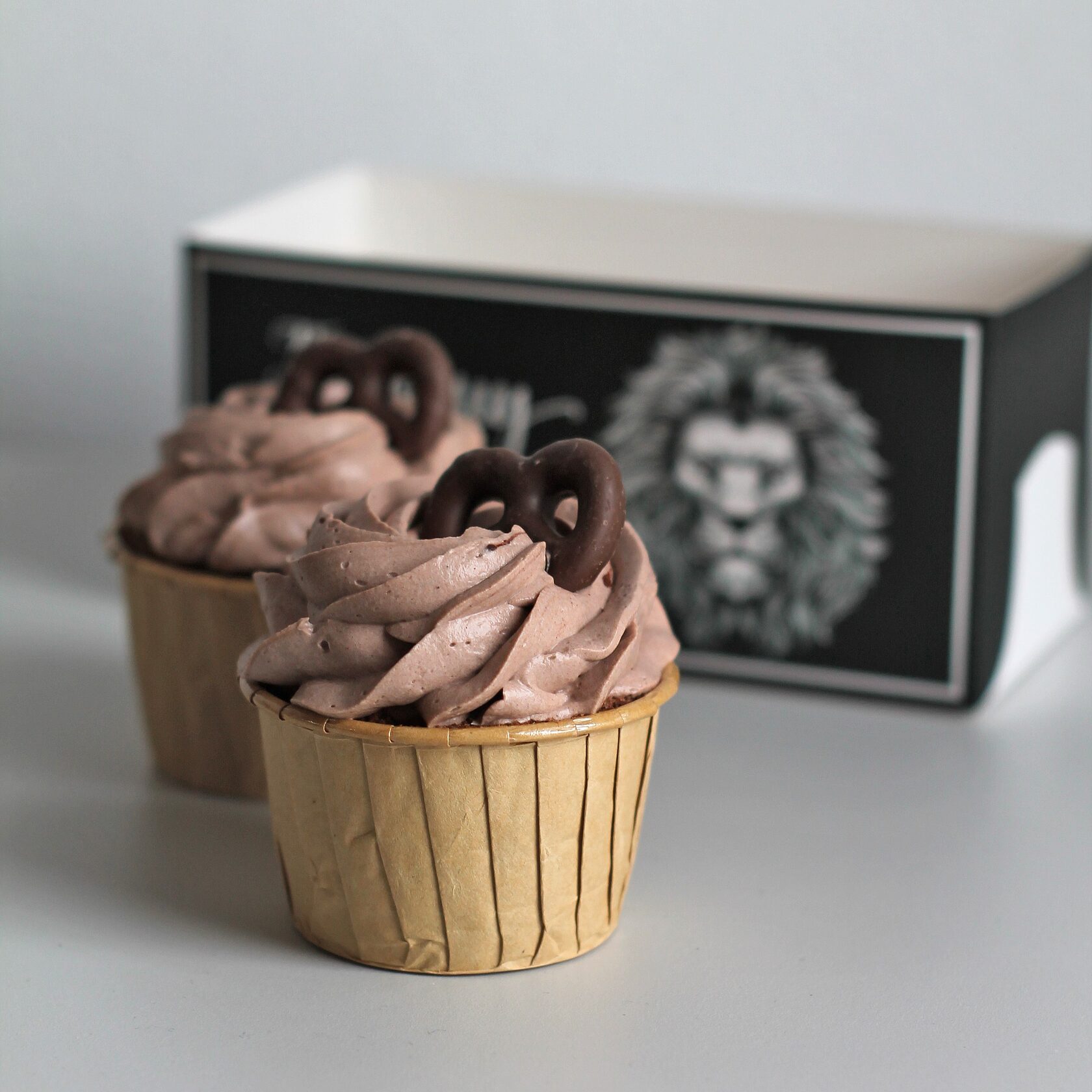 Сладкий комплимент для мужчин, которые ценят вкусные десерты. Шоколадные капкейки с соленой карамелью и шоколадным кремом - 2 штуки по 90г в подарочной упаковке